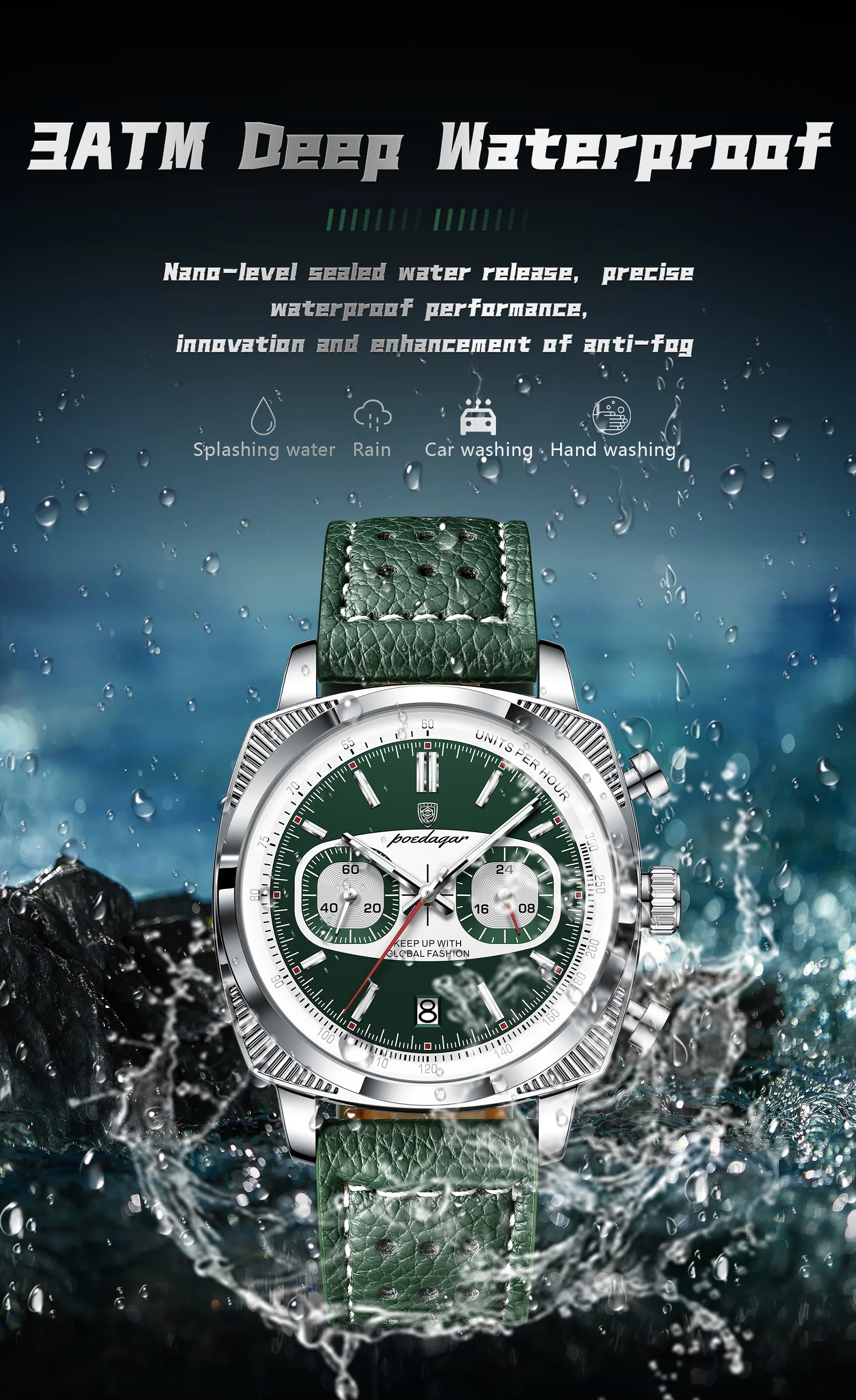 Profundidade de resistência à água: 3 barras